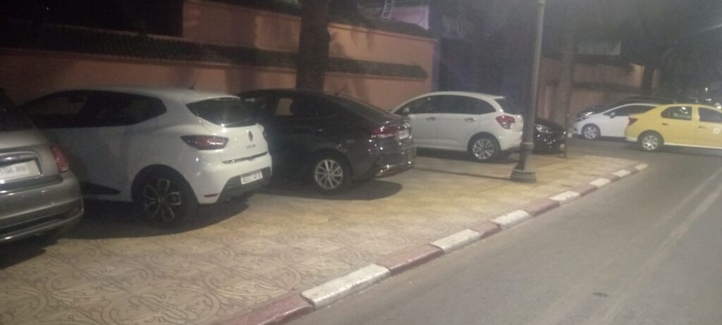 استغلال الرصيف بالقرب من منارة مول لركن السيارات يسائل السلطات الأمنية