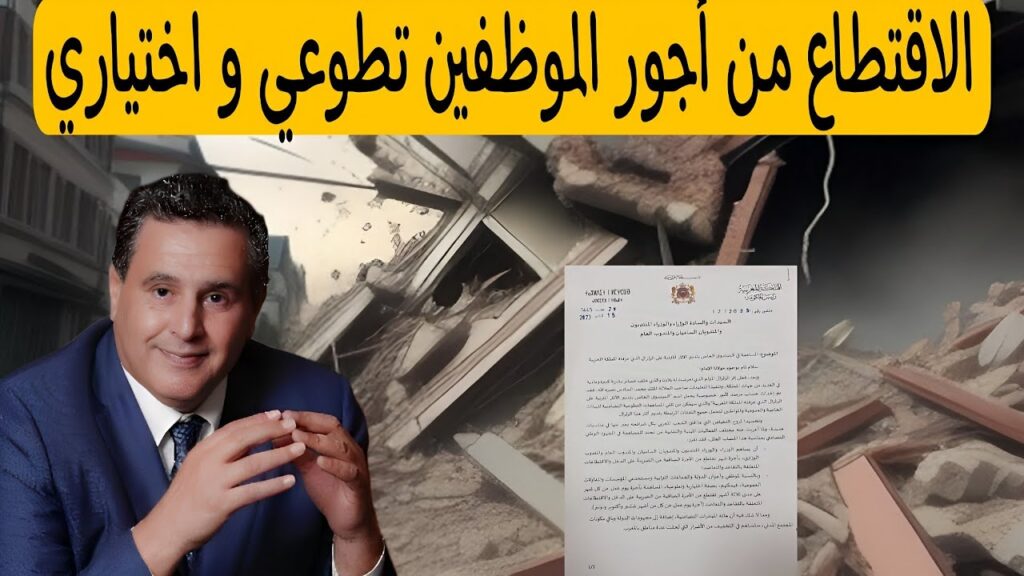 أفاد منشور لرئاسة الحكومة بأن مساهمة الموظفين بأجرة يوم عمل عن كل شهر على مدى ثلاثة أشهر، في “الصندوق الخاص بتدبير الآثار المترتبة على الزلزال الذي عرفته المملكة المغربية” ستكون اختيارية وتطوعية، بناء على استمارة بمثابة ترخيص مخصصة لهذا الغرض.