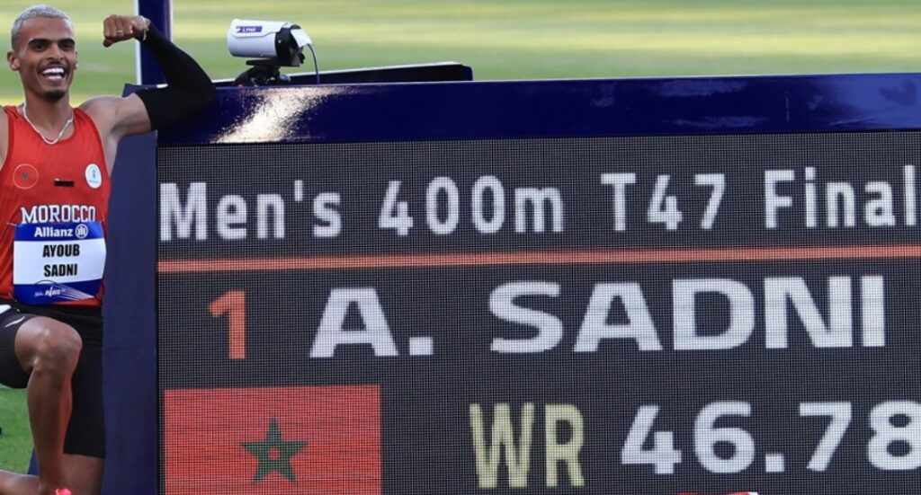 حطم المغرب الرقم القياسي العالمي لسباق 400 متر (فئة تاء 47)، وذلك خلال دورة الألعاب البارالمبية المتواصلة حاليا بالعاصمة الفرنسية إلى غاية 17 يوليوز الجاري.