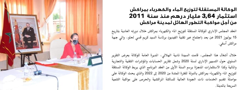 الوكالة المستقلة لتوزيع الماء و الكهرباء بمراكش استثمار 3.64 مليار درهم منذ سنة 2011 من أجل مواكبة التطور الهائل لمدينة مراكش
