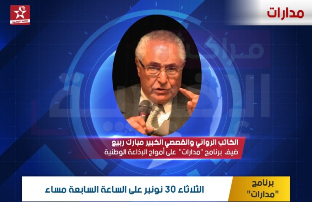 يحل الكاتب الروائي والقصصي الكبير مبارك ربيع ، ضيفا على برنامج “مدارات” ، في حديث أدبي وفكري شامل.
