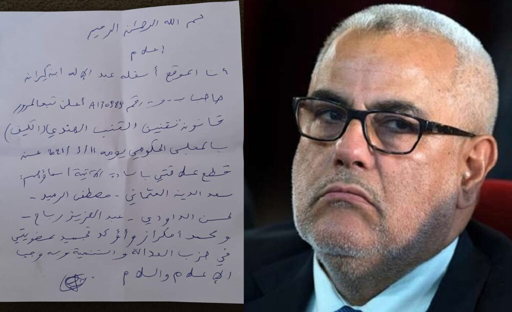 اعلن بنكيران رئيس الحكومة الأسبق والامين العام السابق للعدالة والتنمية على صفحته الرسمية أنه بعد مصادقة الحكومة على مشروع قانون تقنين الكيف فقد قرر مقاطعة كل من العثماني والرميد والداودي والرباح إضافة إلى محمد امكراز بصفتهم أعضاء الأمانة العامة للحزب كما أعلن عن تجميد عضويته للحزب ، وكان بنكيران قد هدد سلفا أنه في حالة ما إذا صادقت الحكومة على مشروع القانون المتعلق بتقنين زراعة الكيف فسيجمد عضويته من الحزب كما سيغادره نهائيا حالة تصويت الفريق النيابي على المشروع