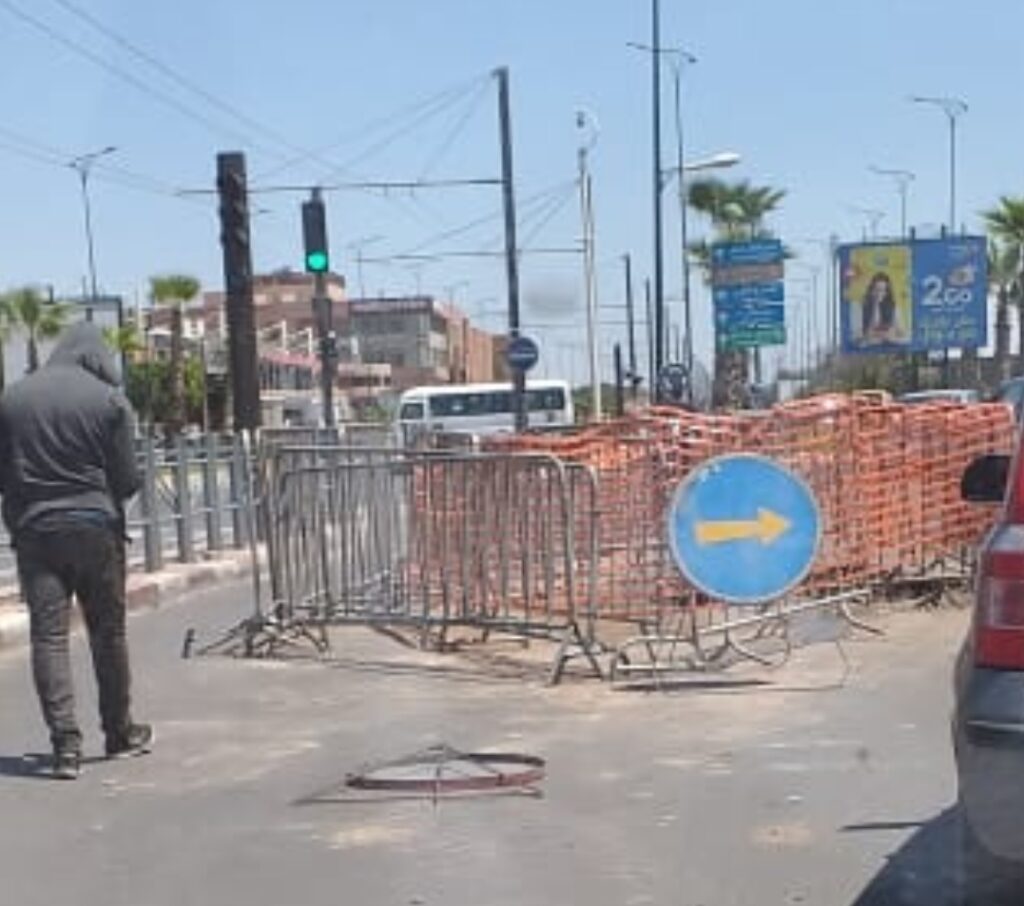 وأوضح مشتكون أن هذه الحفرة موجودة منذ ما يزيد عن ثلاثة أشهر، وقد تدخلت مصالح الكجلس الجماعي بوضع حواجز حديدية من حولها وتركها على ذلك الوضع، مما يشكل خطرا على السائقين وكذا الراجلين.