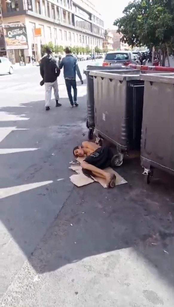 وعلاقة بالموضوع، توصلت جريدة مراكش الإخبارية، بفيديو من حي جليز الراقي، وبالضبط أمام مركز التسوق “Care Eden”، حيث أظهر صورة مأساوية لشاب عشريني ذو جسم هزيل وهو يفترش الأرض بجانب حاويات القمامة، في مشهد يعكس معاناة الفقر والإهمال والتشرد في قلب مدينة النخيل.