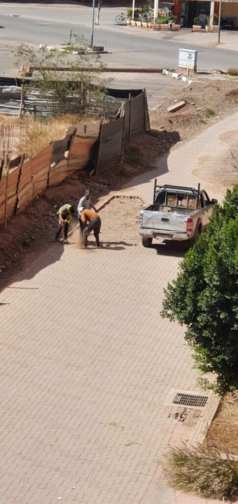 أقدم عمال من شركة خاصة حائزة على صفقة من إحدى شركة الاتصالات تخص ربط منطقة المحاميد7 بالألياف البصرية، على اقتلاع أحجار ترصيف أحد أزقة منطقة المحاميد9، وذلك من أجل استخدامها في إتمام أشغال الشركة الخاصة بالصفقة المذكورة.