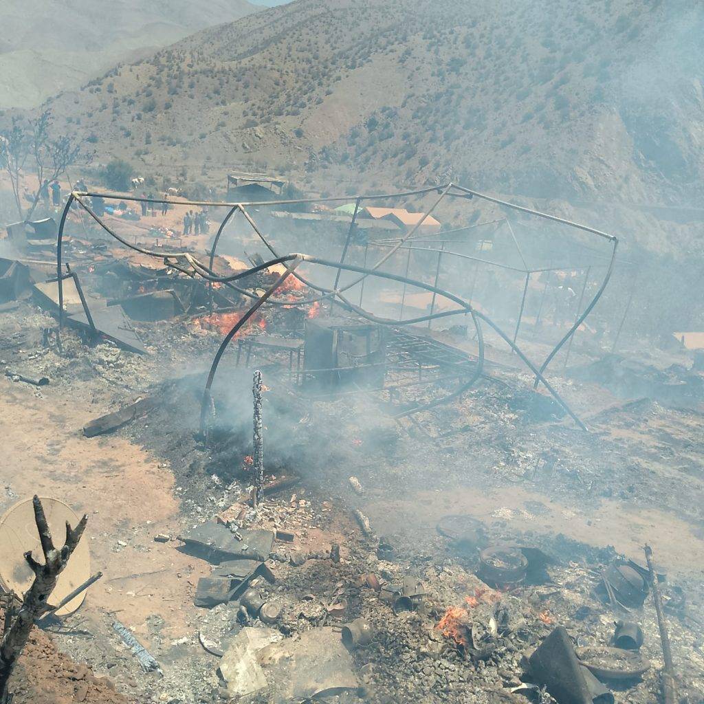 عاجل .. حريق يأتي على خيمة تأوي أسرة متضرر من الزلزال باٍجوكاك