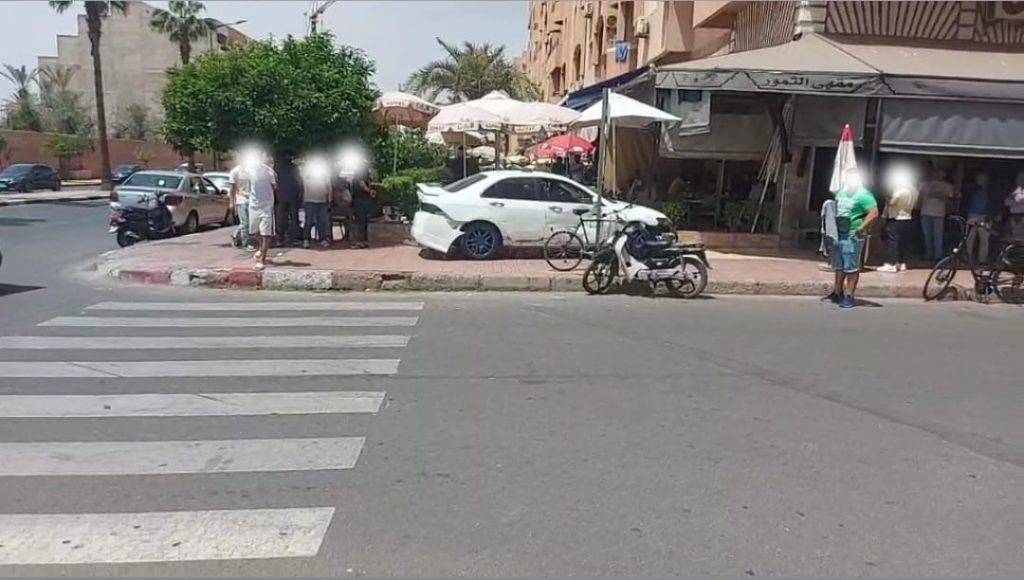 وحسب المعطيات التي توصلت بها جريدة مراكش الإخبارية، فقد شهد شارع علال الفاسي اصطدام بين ثلاث سيارات، لتقتحم احداهم مقهى “التمور”، ما خلف خسائر مادية فادحة، بالمقابل تسببت في جروح خفيفة للاشخاص الذين كانوا على متن السيارات.