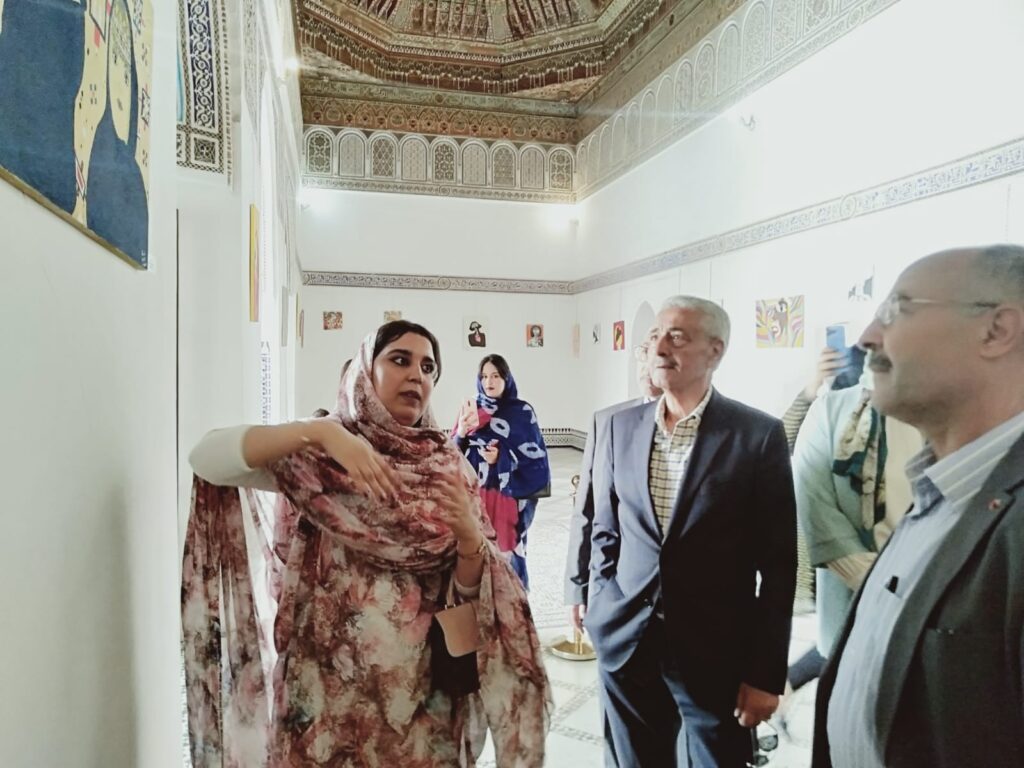 فنانة تشكيلية تقدم لوحات عن المرأة الصحراوية في قلب قصر الباهية بمراكش