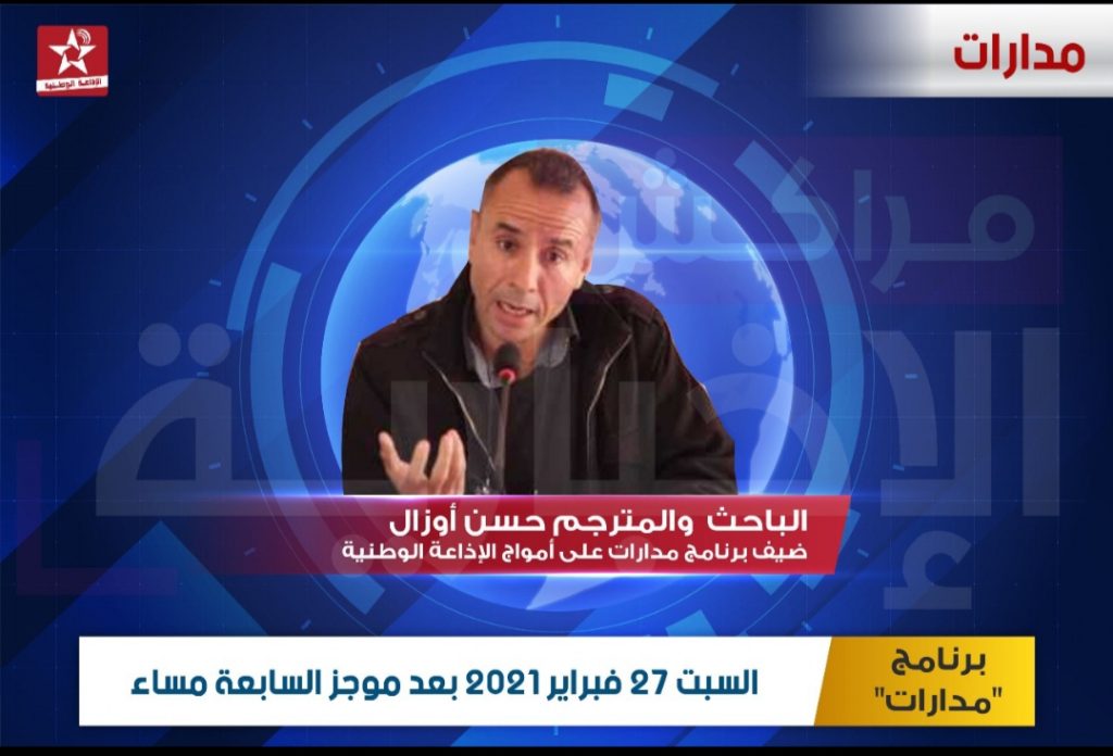 وستذاع هذه الحلقة من برنامج “مدارات ” ، على أمواح الاذاعة الوطنية من الرباط ، يوم السبت 27 فبراير الجاري ، بعد موجز أنباء الساعة السابعة مساء .