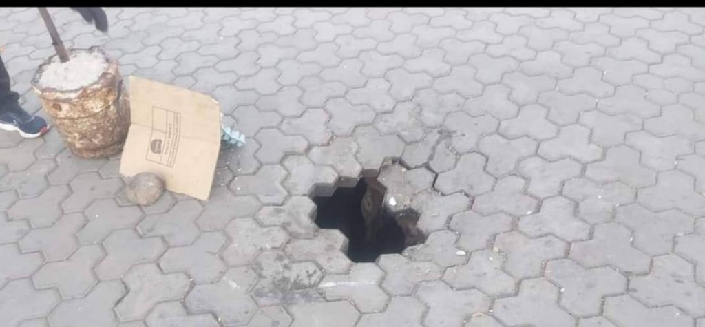ومن الواضح أن الأمر يتعلق بخطارة انهار بلاطها، فبدت تظهر للعيان حفرة عميقة وجوانبها تهدد بالانهيار، وهو ما قد يتسبب في حوادث قد تؤدي لما لا يحمد عقباه.