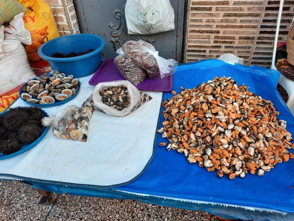 - الصورة الثانية: عرض المحارللبيعبالسوق البلدي لمدينة سيدي إفني.