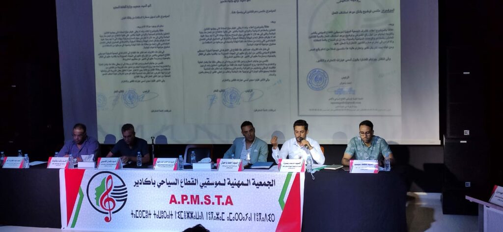 تحت شعار: اجتماعنا اليوم ضمان لحقنا غدا” عقدت الجمعية المهنية لموسيقيي القطاع السياحي بأكادير لقاءها التواصلي الأول انعقد زوال يومه الثلاثاء 22 يونيو 2021.