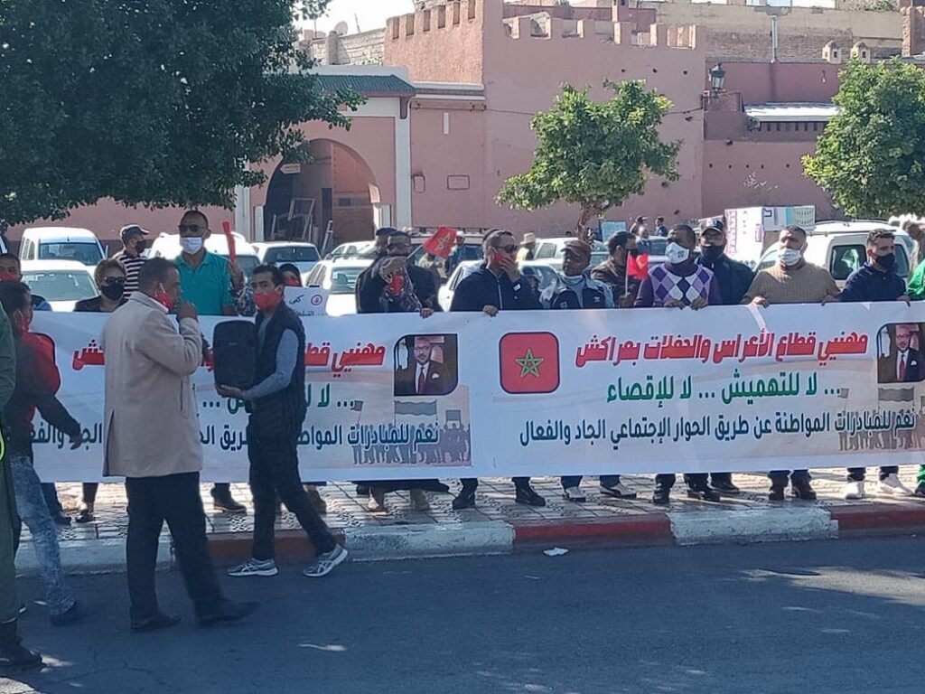 مهنيو قطاع الحفلات والاعراس بمراكش يخرجون للشارع للاحتجاج على القرار الحكومي