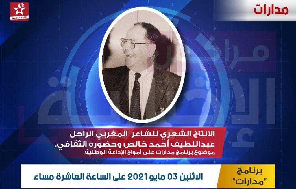 تبث الاذاعة الوطنية من الرباط يوم الاثنين 3 ماي الجاري ، في الساعة العاشرة مساء ، حلقة جديدة من برنامج “مدارات ” ، تتناول الانتاج الشعري للشاعر المغربي الراحل عبداللطيف