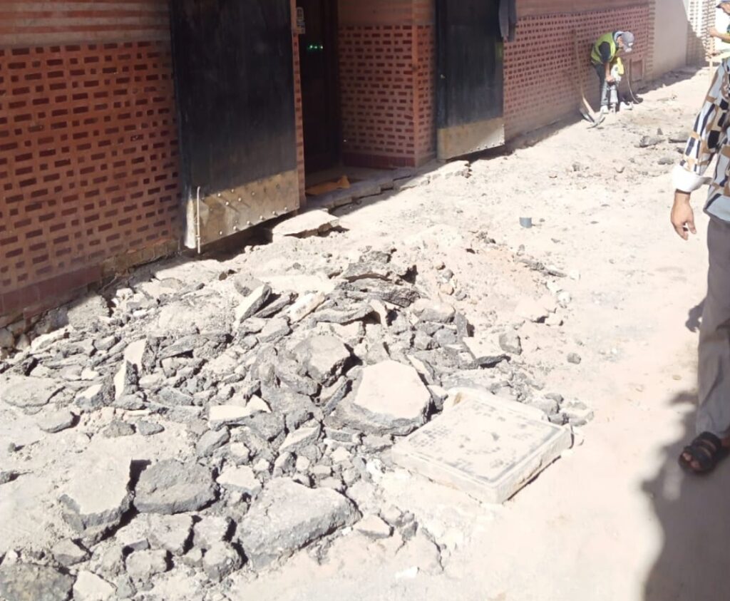 ونتيجة لعدم احترام المعايير المعمول بها، فإن القواديس التي وضعتها شركة “لاراديما” أصبحت غارقة تحت الأرضية الجديدة مما اضطرهم إلى تكسيرها ورفعها عن مستوى السطح.