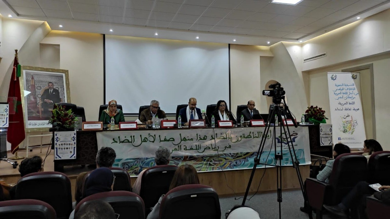 1كتبت: دة فاطمة حرار) ـ احتفاء باليوم العالمي للغة العربية الذي يصادف كل سنة 18 دجنبر، نظمت التنسيقية الجهوية للائتلاف الوطني من أجل اللغة العربية لجهة مراكش آسفي ندوة فكرية موسومة ب: “اللغة العربية والقانون”عشية يوم السبت 24 دجنبر 2022 بالقاعة الكبرى غرفة التجارة والصناعة جليز مراكش. وتأتي الندوة في سياق تتويج الأيام الاحتفالية الثقافية ضمن برنامج ممتد من 20 إلى 30 دجنبر 2022 تحت شعار: “اللغة العربية: هوية، ثقافة، امتداد”، بمساهمة ثلة من الأساتذة الباحثين والأكاديميين والمثقفين.