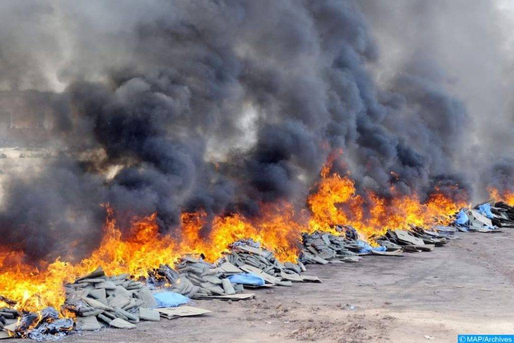 وتم إتلاف هذه الكمية الكبيرة من المخدرات تحت إشراف النيابة العامة، بحضور أعوان الجمارك وممثلي السلطات المحلية والدرك الملكي وقطاع الصحة والوقاية المدنية.