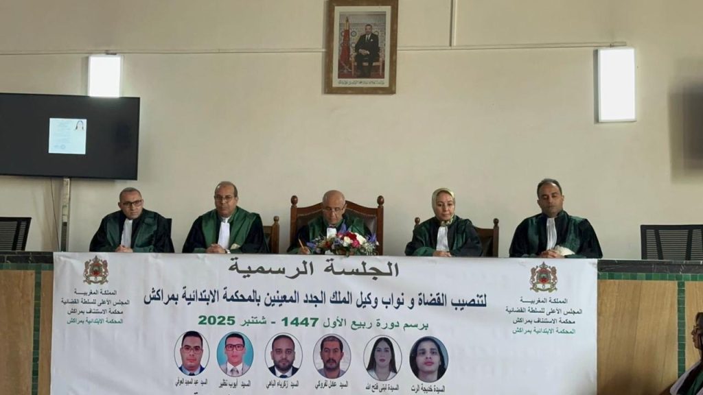 تنصيب قضاة بابتدائية مدينة مراكش محلية تنصيب قضاة بابتدائية مدينة مراكش مراكش الإخبارية 2026-02-23 16:47 ترأس الأستاذ محمد دحان، رئيس المحكمة، جلسة رسمية صباح اليوم الاثنين بمقر المحكمة الابتدائية بمراكش، خُصصت للتنصيب الرسمي لستة قضاة جدد جرى تعيينهم...اقرأ المزيد