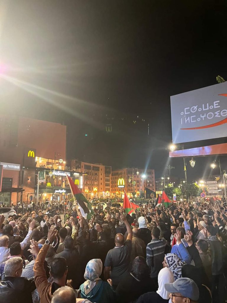 نظمت الجبهة المغربية لدعم فلسطين ومناهضة التطبيع وقفة احتجاجية ضد اقتحام واحتلال مستشفى الشفاء من طرف الكيان الصهيوني، وذلك بحي جليز امام مقر اتصالات المغرب بشارع محمد الخامس.