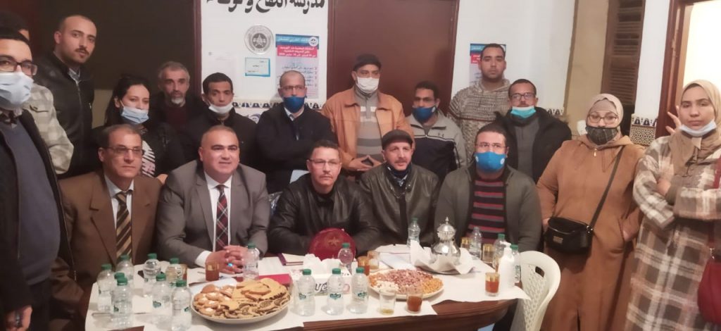 في إطار الدينامية النقابية والتنظيمية للاتحاد المغربي للشغل و بتوجيه وإشراف الأمين العام الميلودي المخارق، حل فيصل ايت علي اومنصور الكاتب الجهوي لنقابات مراكش و نائبه زكرياء ايت علي اومنصور بصفتهما عضوي المكتب الوطني للاتحاد المغربي للشغل واللجنة الوطنية للتنظيم بمعية وفد هام عن الإتحاد الجهوي مكون من ربيع ازيكي، عبد اللطيف بدراري و مهدي ابوازار، عشية اليوم الخميس، بمدينة بنجرير لترأس أشغال المجلس النقابي التنظيمي للاتحاد المحلي لإقليم الرحامنة بمقر هذا الأخير في إحترام للإجراءات الوقائية المنصوح بها و بحضور وازن لكل القطاعات المهنية.