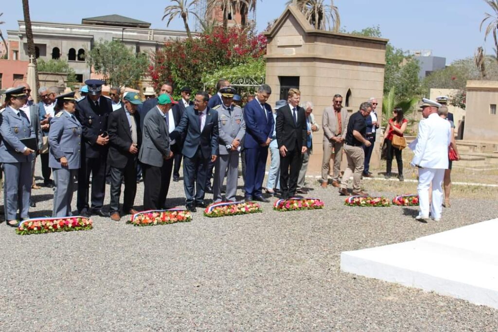 وبالمناسبة، تم رفع العلمين المغربي والفرنسي وعزف تحية العلم، ثم ألقى القنصل الفرنسي ستيفان بومغارت كلمة أمام الحضور، قبل أن يقوم الحاضرون بوضع باقات الورود كما جرت العادة أمام القبور.
