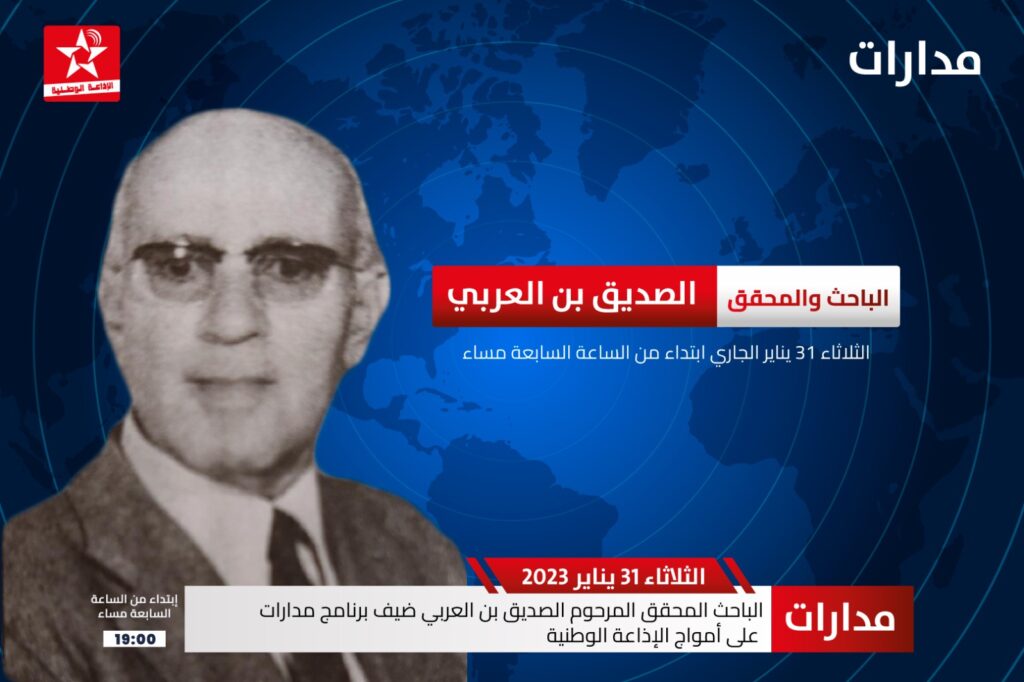 ويلتقي المستمعون يومه الثلاثاء 31 يناير ، في الساعة السابعة مساء ، مع حلقة جديدة من البرنامج ، يخصصها الاعلامي عبدالإله التهاني لاضاءة محطات من سيرة الباحث المحقق المرحوم الصديق بن العربي ، أحد أعلام الحركة الادبية والعلمية والصحفية الحديثة بالمغرب ، فضلا عن كفاحه الوطني من أجل استقلال البلاد ، حيث كان ضمن الموقعين على عريضة المطالبة بالاستقلال في يناير 1944، وإشرافه لعقود من الزمن على خزانة جامعة ابن يوسف بمدينة مراكش .
