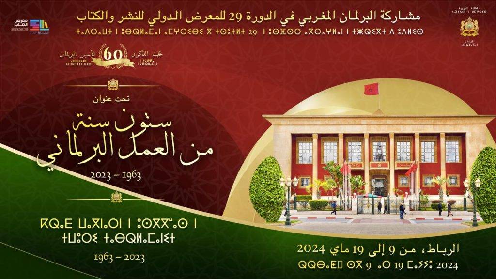 يشارك البرلمان المغربي بمجلسيه مجلس النواب ومجلس المستشارين، للمرة الثالثة على التوالي، في الدورة ال 29 للمعرض الدولي للنشر والكتاب، الذي تنظمه وزارة الشباب والثقافة والتواصل تحت الرعاية السامية لصاحب الجلالة الملك محمد السادس نصره الله بمدينة الرباط خلال الفترة الممتدة من 9 إلى 19 ماي 2024.