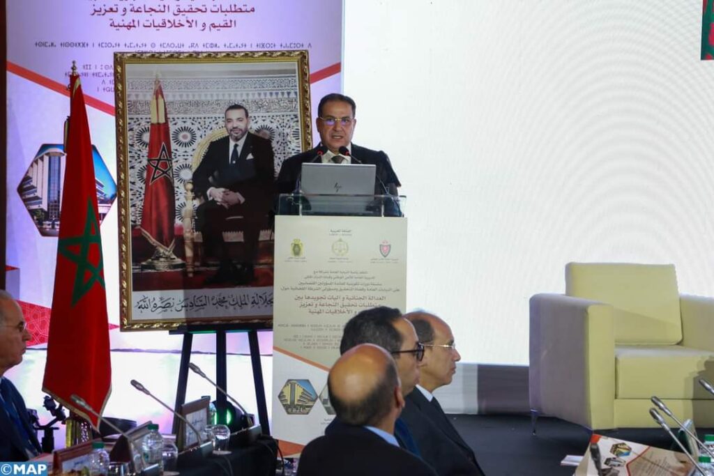 وقال السيد الدخيسي، في كلمة للمديرية العامة للأمن الوطني، في افتتاح أشغال الدورة التكوينية الثانية من سلسلة الدورات التكوينية لفائدة المسؤولين القضائيين على النيابات العامة وقضاة التحقيق ومسؤولي الشرطة القضائية، المنظمة حول موضوع “العدالة الجنائية وآليات تجويدها بين متطلبات تحقيق النجاعة وتعزيز القيم والأخلاقيات المهنية”، إنه “لاغتنام فرصة هذه اللقاءات الجهوية، التي يمكن أن تتبوأ مكانتها كإطار للتنسيق والتعاون وتدارس القضايا المستشكلة، توصلا إلى ترصيد مكتسبات التعاون والتشاور والتنسيق من أجل تجاوز الصعوبات العملية ومأسسة الممارسات الجيدة ودعم جهود تنسيق وتعبئة الموارد والإمكانات المتاحة لتحقيق أهداف النجاعة القضائية والالتقائية في عمل مختلف السلطات المكلفة بالبحث والتحقيق والمتابعة، فإننا نتطلع إلى دعم واستدامة هذه الجهود الرامية إلى تحقيق نقلة نوعية في سبيل تحقيق أهداف العدالة الجنائية ودعم الإحساس بالعدالة والأمن والمحافظة على النظام العام، بما يساهم في رفع التحديات المحيطة وقطع الطريق على محترفي الاستغلال العشوائي للمسألة الحقوقية في بلادنا”.