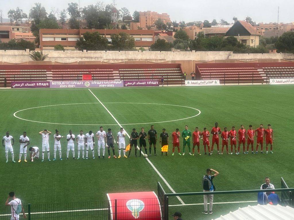 وبالعودة الى تفاصيل المواجهة التي أقيمت على أرضية الملعب البلدي بخنيفرة، فقد انتهى الشوط الاول بالنتيجة التي بدأ بها، بعدما شهد شحا في الفرص الواضحة للتسجيل، باستثناء فرصة لاصحاب الأرض عند الدقيقة 40 عن طريق النغمي، صدها بنجاح الجمجامي، واخرى للضيوف في الوقت الاضافي ضيعها برعونة المهاجم “مومودو”.