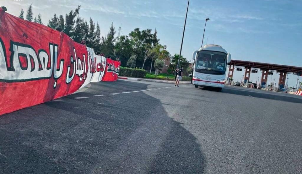 وقد وجدت حافلة الفريق في طريقها عند مخرج المدينة الحمراء عشرات المشجعين المنتمين لفصيل كريزي بويز، حيث رفعوا رسائل دعم للاعبين، كما تم تحفيزهم بغية العودة بنتيجة إيجابية، والظهور بشكل جيد في أولى مواجهات الموسم الرسمية.