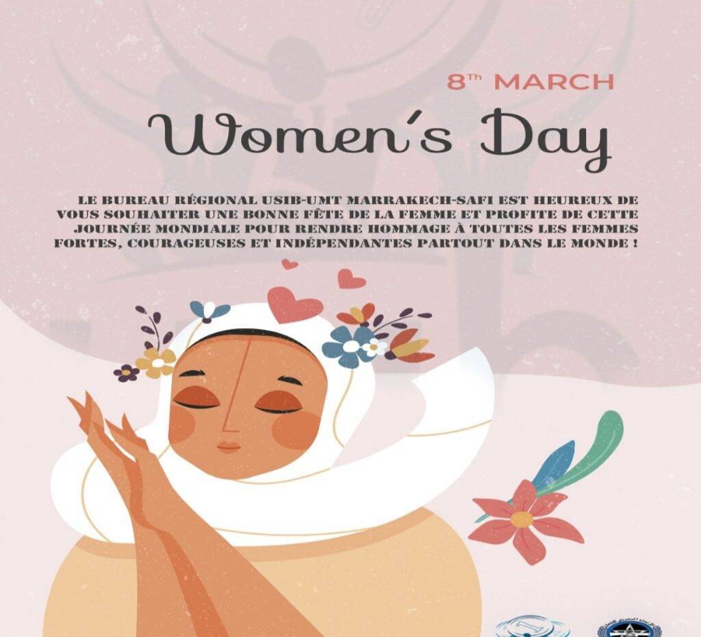 في إطار الإحتفال باليوم العالمي للمرأة 8 مارس 2021 تقدم المكتب الجهوي للابناك الاتحاد المغربي للشغل بجهة مراكش آسفي باحر التهاني للمرأة البنكية بجميع فئاتها و درجاتها منوها بكفاءة وشجاعة وتجند هذه الأخيرة في جميع المواقف والظروف الصعبة لاسيما ماأضهرته من جسامة وتضحية في الصفوف الأولى خلال هذه الجاءحة غير المسبوقة.