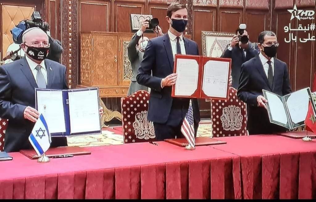 وفي ختام هذا الاستقبال تم التوقيع أمام الملك محمد السادس على إعلان مشترك بين المملكة المغربية والولايات المتحدة الأمريكية ودولة إسرائيل والذي وقعه رئيس الحكومة السيد سعد الدين العثماني وجاريد كوشنر والسيد مئير بن شبات