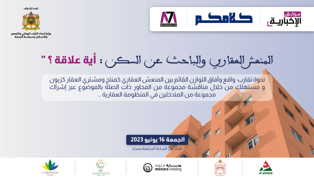 انعقدت يوم الجمعة 16 يونيو 2023 بمراكش، ندوة لمقاربة واقع وآفاق التوازن القائم بين المنعش العقاري كمنتج ومشتري العقار كزبون ومستهلك، بمبادرة من جريدة كلامكم ومؤسسة مراكش الإخبارية، بهدف مناقشة مجموعة من المحاور ذات الصلة بالموضوع عبر إشراك مجموعة من المتدخلين في المنظومة العقارية.