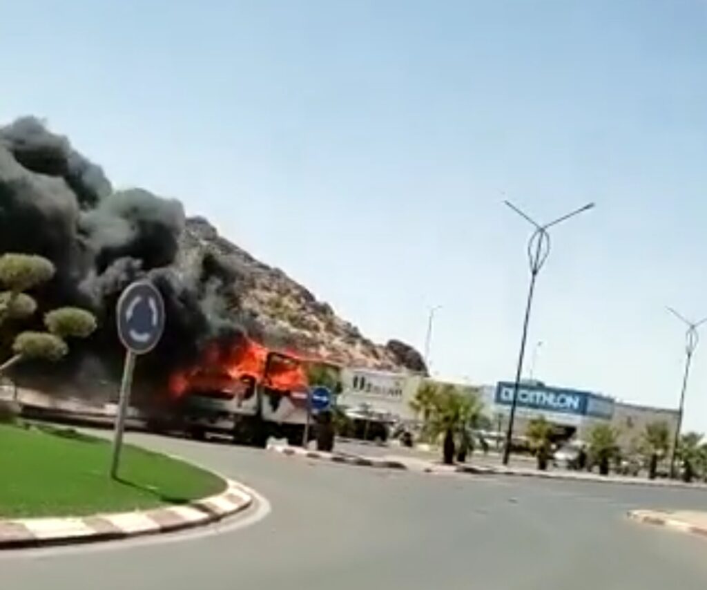النيران تلتهم شاحنة وسط الشارع وعلى مقربة من مرجان