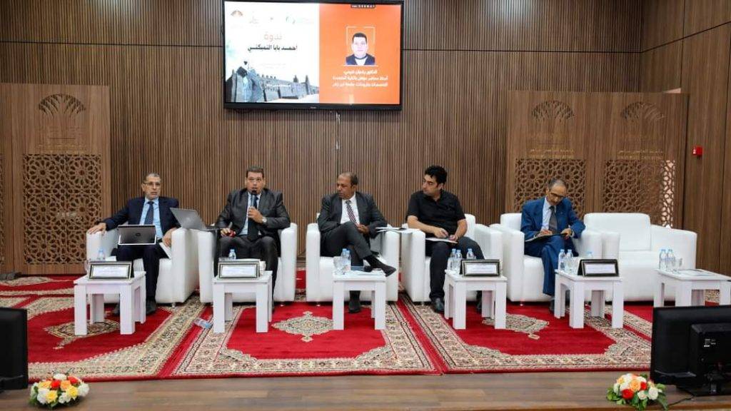 واختتمت الجلسة الافتتاحية للندوة بكلمة للدكتور أحمد التوفيق، وزير الأوقاف والشؤون الإسلامية المغربي، استعرض خلالها الرحلة العلمية للعلامة التمبكتي التي امتدت بين مدينتي تمبكتو ومراكش والساحل والصحراء الإفريقيين، وأبرز التراجم التي تناولت سيرته والسياق الذي نشأ وترعرع فيه، مؤكدا أن الوزارة تولي أهمية كبرى للمآثر الخاصة بالعلامة في مراكش.