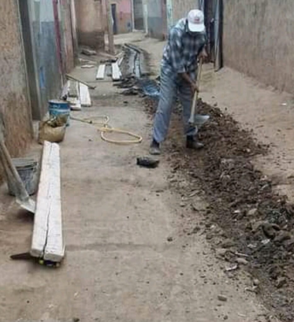 تجاهل السلطات المعنية يدفع اعضاء جمعية النهضة بدوار النزال إلى إنشاء قنوات الصرف الصحي بجماعة تسلطانت