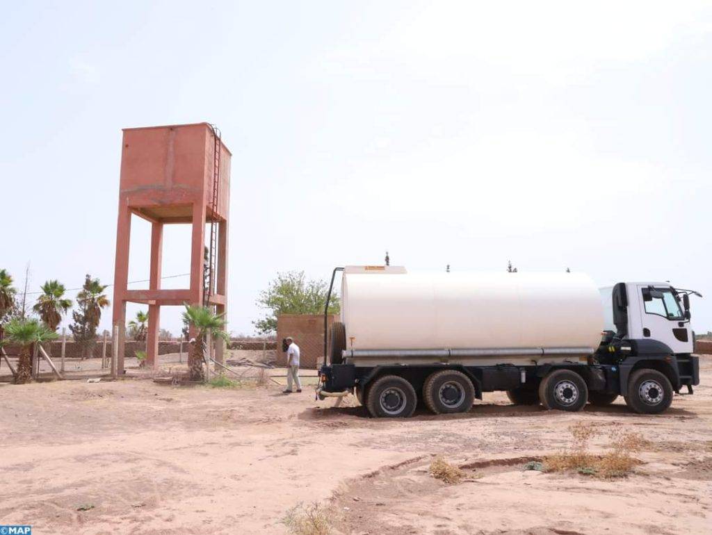 ويغطي نظام توزيع المياه بواسطة الشاحنات الصهريجية، الذي يعمل بشكل يومي، المناطق الأكثر تضررا من نقص المياه الصالحة للشرب. وتقطع كل شاحنة محملة بالمياه انطلاقا من الخزانات التابعة للجماعة، مسافات طويلة من أجل تزويد الدواوير النائية.