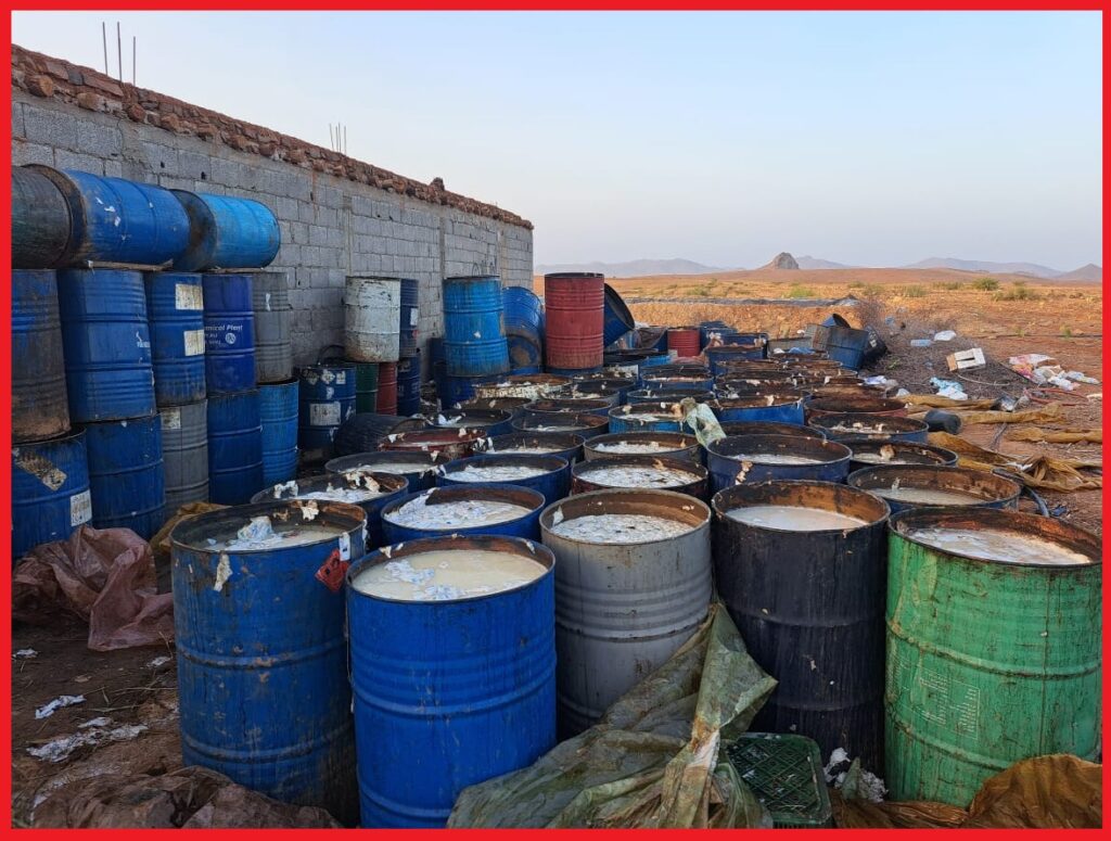 كما قادت الأبحاث والتحريات المتواصلة في هذه القضية إلى تحديد هويات ثلاثة أشخاص يشتبه في تورطهم في إعداد مسكر ماء الحياة المحجوز، جرى توقيفهم بتنسيق مع عناصر الدرك الملكي بالمنطقة القروية “لمعامرة”، حيث مكنت عملية التفتيش المنجزة بعين المكان من حجز 2000 لتر إضافية من هذه المادة المسكرة و28 ألف لتر من المواد المخمرة التي تستعمل في تحضيرها.
