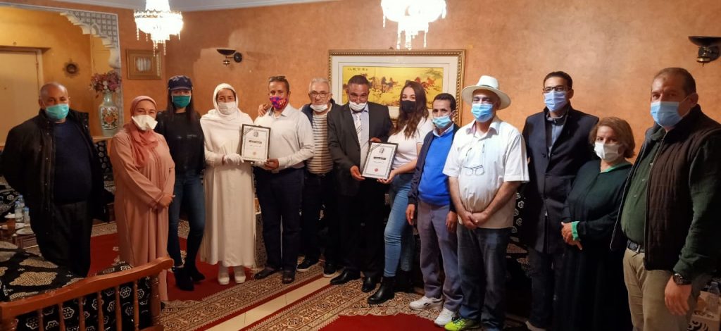 وكانت الزيارة، مناسبة تم خلالها تكريم زوجة الراحل، مع شكرها على كل المجهودات التي بذلها زوجها من أجل النهوض بقطاع مموني الحفلات، وكذا قيامه قيد حياته بالعديد من الأعمال الاجتماعية والخيرية بالمدينة الحمراء.