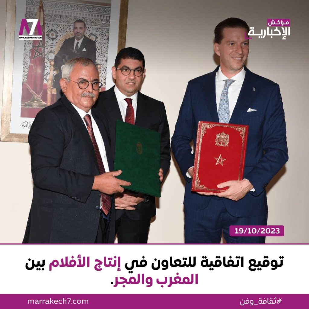 جرى يوم أمس الخميس توقيع اتفاقية للتعاون في إنتاج الأفلام بين المركز السينمائي المغربي والمركز الوطني للفيلم المجري. وذكر وزير الشباب والثقافة والاتصال، محمد المهدي بنسعيد، في منشور على صفحته على الفيسبوك، أنه ترأس حفل توقيع الاتفاقية . والتي تهدف إلى تسهيل العمل للفنيين والتقنيين داخل البلدين وتسمح بالاستيراد والتصدير للمعدات الضرورية لإنتاج الأفلام، إضافة إلى توفير تسهيلات مادية ولوجستية للإنتاجات المشتركة بين السينمائيين في البلدين.