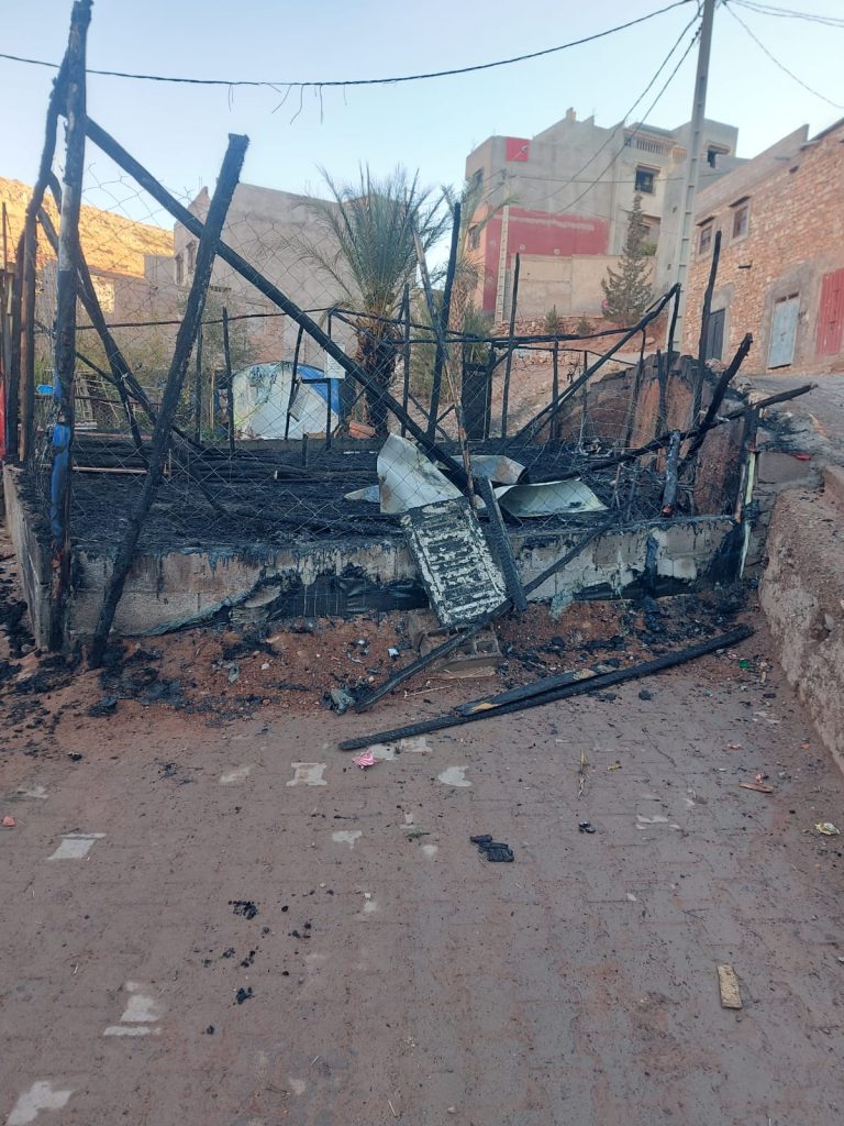 حرق خيمة مسجد وتكسير زجاج سيارة يثير جدلا بالحوز+صور