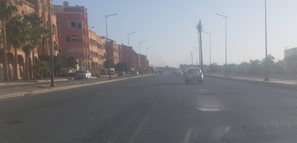 على الرغم من حداثة عهدها، إلا أن الطريق المدارية الفاصلية بين حي المسيرة 3 ومنطقة الضحى أبواب مراكش أصبحت تشكل خطرا حقيقيا على المارة وأصحاب السيارات والدراجات النارية، بسبب الحفر الكثيرة على طول المقطع الطرقي.