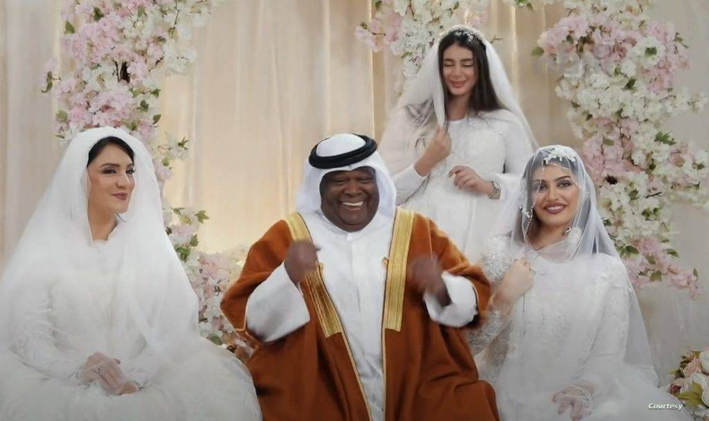 وفي نفس السياق، نشرت العديد من الصفحات الفيسبوكية الجزائرية صورة، نسبتها إلى عرس عربي لزوج خليجي ثري، تزوج ثلاث مغربيات في آن واحد .