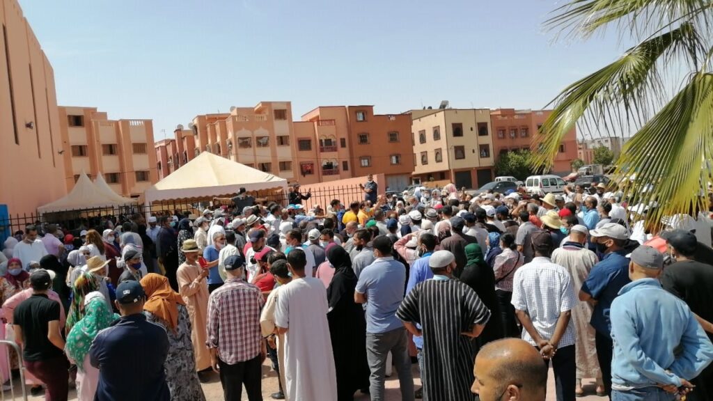 وقد توصل موقع “مراكش7” بعشرات الصور من مراكز التلقيح المتواجدة بالاحياء الشعبية على غرار المحاميد وايزيكي والداوديات، حيث توثق لفوضى عارمة وازدحام في غياب تام للتدابير الوقائية لتفادي تفشي فيروس كورونا خاصة التباعد الجسدي.
