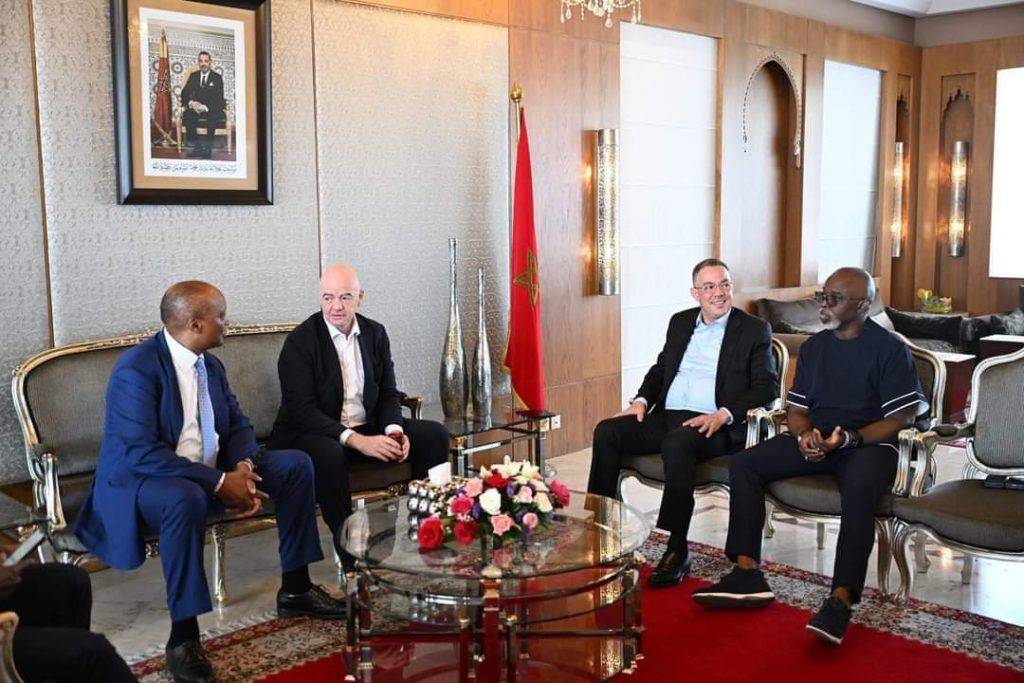 ووجد إنفانتينو في استقباله كلا من فوزي لقجع، رئيس الجامعة الملكية المغربية لكرة القدم وباتريس موتسيبي، رئيس الاتحاد الإفريقي.