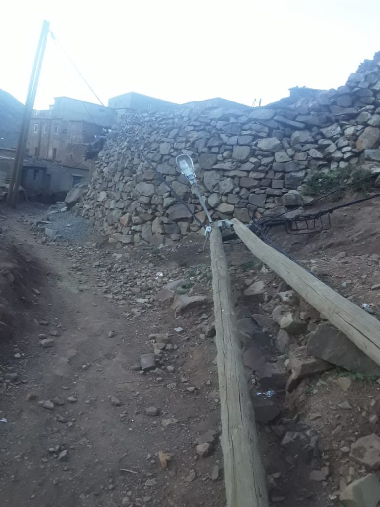 ويعودُ سقوط الأعمدة الكهربائية إلى عدة شهور، جرّاء الأحوال الجوية التي تعرفها المنطقة، ورُغْمَ المخاطر التي يشكّلها انبساط أسلاكها على الأرض، إلا أنَّ الجهات المعنية لمْ تعْمَدْ إلى إصلاحها رغم الشكايات المتعددة في هذا الصدد.