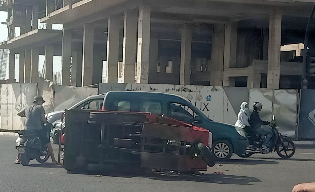 شارع اسفي بمراكش : حادث خطير انقلاب دراجة ثلاثية ” تريبورتور” كانت تقل مواطنين