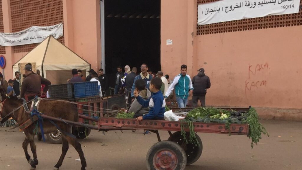 لايمكن أن تزور سوق الجملة بحي المسار بمدينة مراكش إلا وترمق عيناك طفلين بعمر الزهور، لم يتجاوزا العاشرة من عمرهما، بهمة عالية، وسط زحمة السوق الكبير يحاولان اقناع زائر أو تجار في أن يقدم له يدا المساعة بحمل اثقاله على دابتهما، مقابل دراهم معدودة تسد رمقهما وحاجة الأسرة.