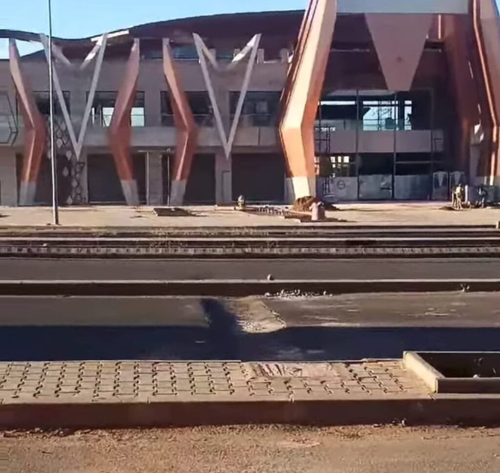 ضجيج غير مألوف تحدثه الشاحنات الثقيلة بسبب حفرة عميقة أمام المحطة الطرقية الجديدة بالعزوزية