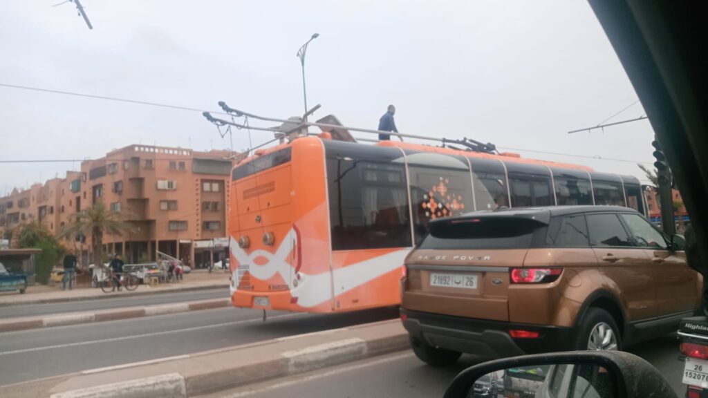 عاجل :انقطاع خيط الحافلة الكهربائية بمراكش ومستعملو الطريق ينجون من الكارثة